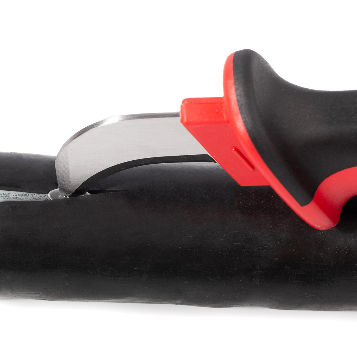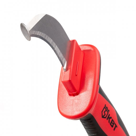 - Частично изолированное изогнутое лезвие с «пяткой» для легкого вскрытия оболочки кабеля без риска повреждения жилы