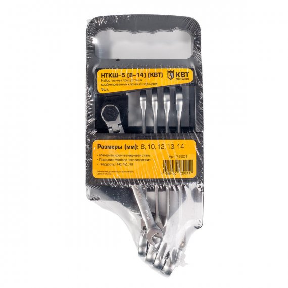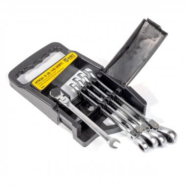 КВТ НТКШ-5 (8-14) Набор гаечных комбинированных трещоточных ключей с шарниром