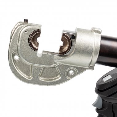 - 13-тонный аккумуляторный пресс с гидравлическим приводом для опрессовки медных и алюминиевых наконечников. Инновационный корпус с плавными обтекаемыми линиями и прорезиненными вставками в основании