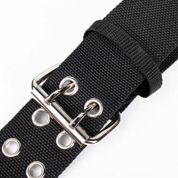- Прочный двухрядный пояс с мощной металлической пряжкой и металлической окантовкой отверстий