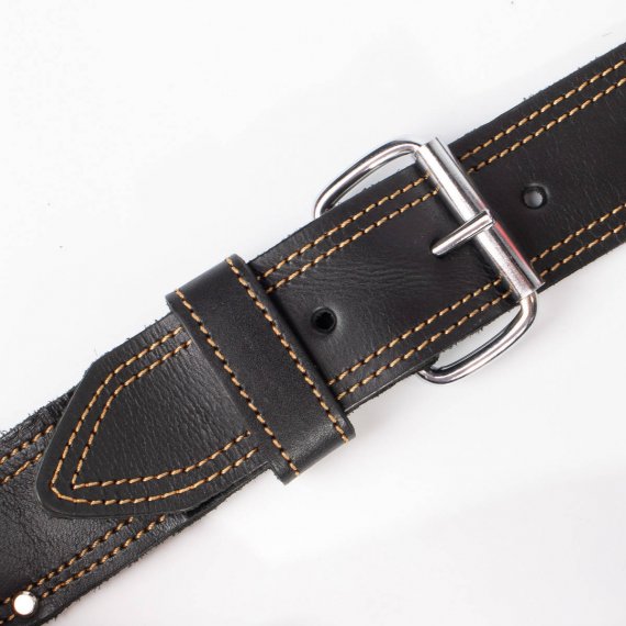 - Все кожаные элементы проклепаны металлическими заклепками в местах наибольшей нагрузки и прошиты двойной строчкой девятислойной крученой нейлоновой нити