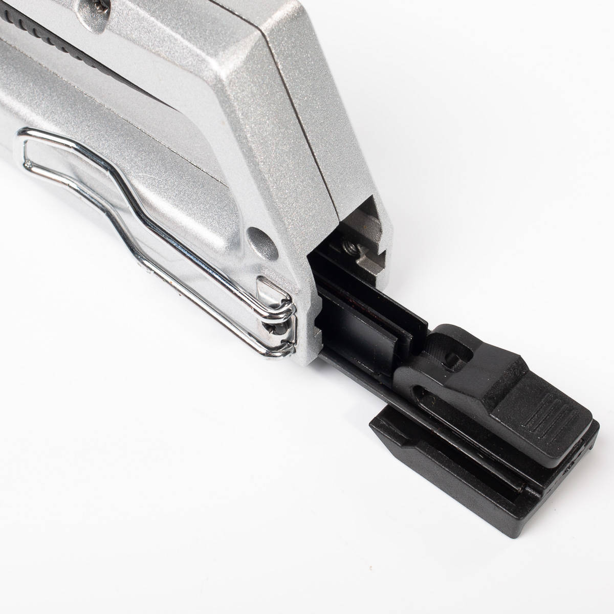- Встроенная металлическая клипса для крепления степлера на пояс