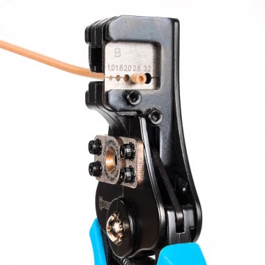 - При сжатии рукояток лезвия автоматически раскрываются, удаляя изоляцию без повреждения жил