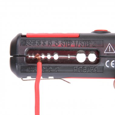- Встроенные торцевые лезвия:- V-образные торцевые лезвия для снятия оболочки кабелей и проводов